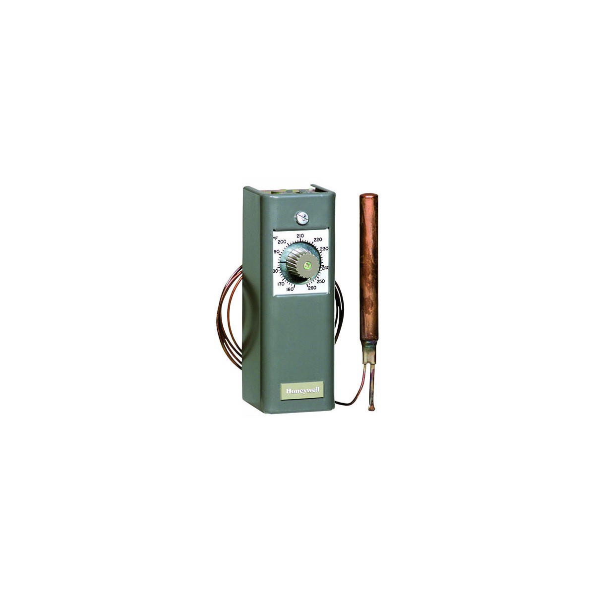 ترموستات هانیول مدل T675A1169 یک‌محصول با کیفیت از دسته ترموستات‌های بالب ریموتی است که دارای دامنه تنظیم دمای 15- تا 35 درجه سانتی‌گراد است. این محصول دارای یک سیم ارتباطی بلند است که در واقع این لوله مویرگی عنصر حسگر دستگاه محسوب می‌شود و امکان نصب المان حسگر از راه دور را فراهم می‌کند. حسگر دستگاه به صورت یک بالب داخل غلاف فلزی طراحی شده است و غلاف درون مايع (آب داخل ديگ) قرار می‌گیرد. این محصول انتخابی مناسب برای کنترل دمپرها و سوپاپ‌ها در سیستم‌های گرمایشی و سرمایشی است. ترموستات کانالی هانیول، به‌عنوان یک کنترل‌کننده از راه دور جهت کنترل دمای آب یا هوای موجود در کانال، لوله‌ها، مخازن و دیگ‌های بخار، مورد بهره‌برداری قرار می‌گیرد. این نوع ترموستات برای کنترل دمای هوا یا مایعات در جایی که کنترل کننده باید در خارج از منطقه سنجش قرار گیرد؛ مناسب است. از ویژگی‌های این محصول می‌توان به زمان پاسخ حداقل چهار برابر سریع‌تر از مدل‌های استاندارد، مشاهده و تنظیم دما از روی کاور، صفحه شماره‌گیر فشار داخل کیس جهت تنظیم محدوده فشار متناسب را نام برد.